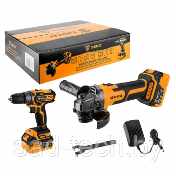 Аккумуляторная дрель Deko DKCD20: Две скорости дают возможность использования высокой или низкой скорости сверления. Идеальная регулировка для точного сверления благодаря 18-ти крутящих моментов. Зажимной патрон 3/8 дюйма для самых разных областей применения. Удобство благодаря запасной кнопке, позволяющей работать одной рукой. Облегченная конструкция и прорезиненная ручка создают приятные ощущения, а дизайну эргономики. Фонарик эффективно освещает в темноте. Переключатель для прямого и реверсивного вращения. Углошлифовальная машина DEKO DKAG20-125: Универсальный инструмент для резки, шлифовки и черновой обработки металла и камня. С помощью определенных приспособлений углошлифовальную машину можно также использовать для чистки и шлифования. Комплектация: Дрель-шуруповерт - 1 шт. Углошлифовальная машина - 1 шт. Вспомогательная ручка - 1 шт. Ключ - 1 шт. Батарея - 2 шт. Зарядное устройство - 1 шт. Инструкция. Коробка. Производитель: NINGBO GI POWER IMPORT EXPORT CO., LTD Срок гарантии, мес.: 12. Сервисный центр: Технозу ООО, г. Минск, ул. Притыцкого 62/5, тел. (017)363-95-71. Страна изготовителя: - Китай. Родина бренда: - Китай. Технические характеристики: Общие характеристики шуруповерта Deko DKCD20: Тип инструмента дрель-шуруповерт. Питание от аккумулятора. Тип двигателя щеточный. Тип патрона быстрозажимной. Макс. диаметр патрона, мм 10. Количество скоростей работы 2. Макс. обороты на 1-ой скорости, об./мин 0-350. Макс. обороты на 2-ой скорости, об./мин 0-1350. Число ступеней крутящего момента 18. Максимальный крутящий момент, Нм 42. Макс. диаметр сверления (дерево), мм 28. Макс. диаметр сверления (металл), мм 10. Наличие подсветки есть. Наличие удара нет. Наличие реверса есть. Блокировка шпинделя нет. Тормоз двигателя нет. Общие характеристики углошлифовальной машины DEKO DKAG20-125: Питание от аккумулятора. Тип двигателя бесщеточный. Число оборотов, об/мин 8500. Диаметр диска, мм 125. Резьба шпинделя М14. Посадочный диаметр, мм 22,20. Аккумулятор: Тип аккумулятора Li-lon. Количество аккумуляторов в комплекте 2. Емкость аккумулятора, А*ч 2,0. Напряжение аккумулятора, В 20. Зарядное устройство в комплекте есть. Вес и габариты в упаковке: Габариты 330 x 200 x 176 мм. Вес нетто: 3,78 кг. Вес брутто: 3,9 кг.